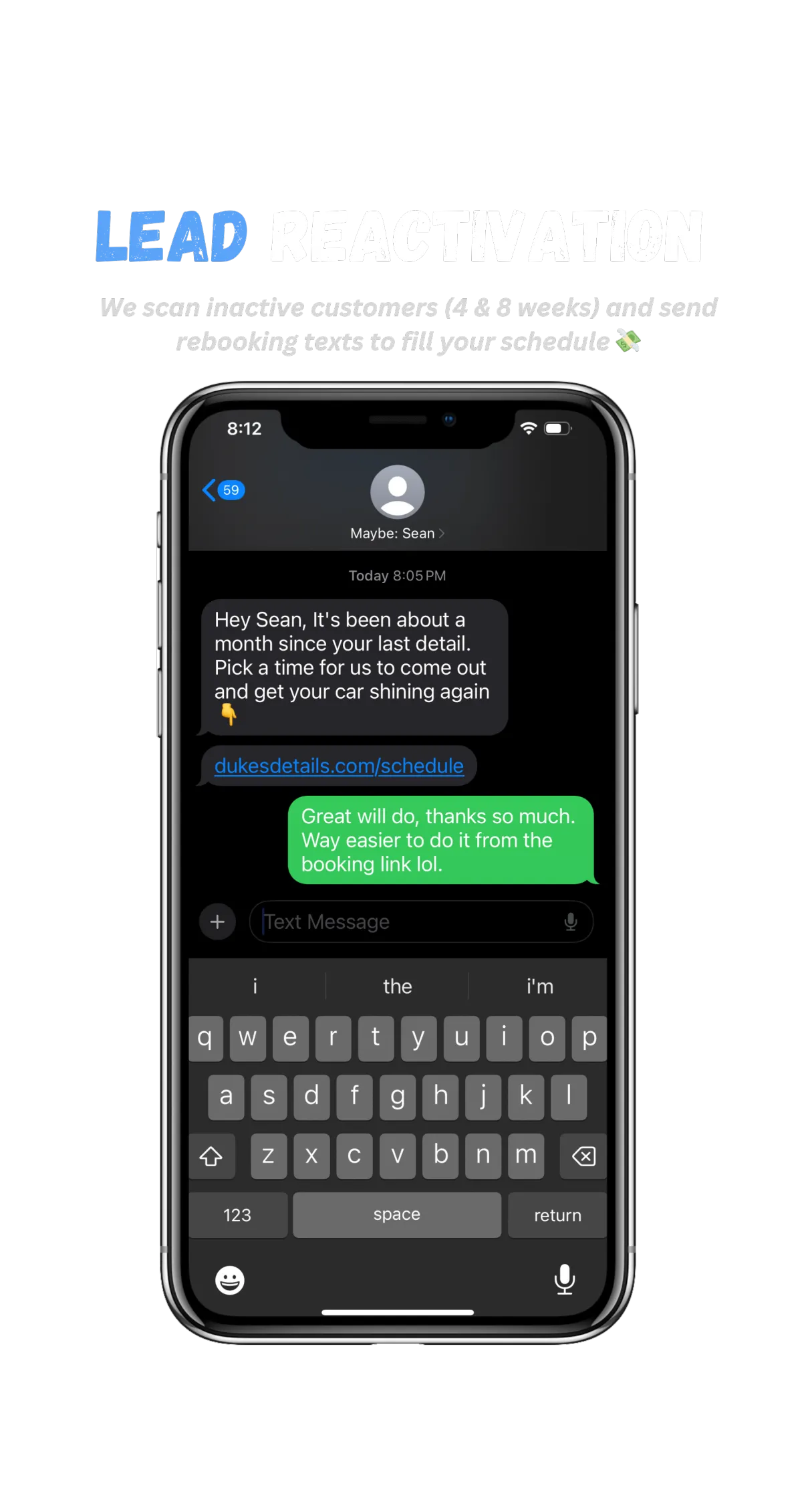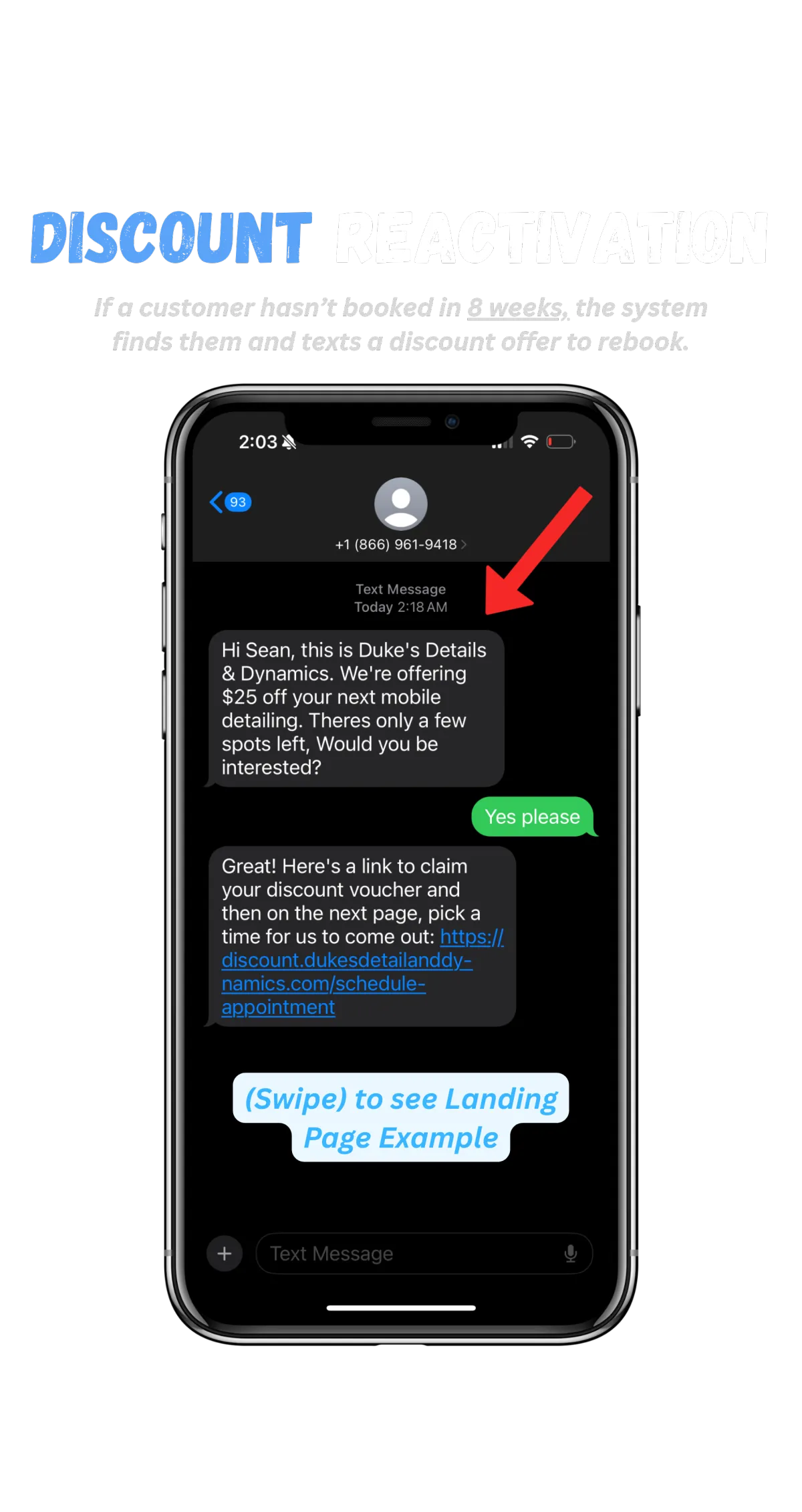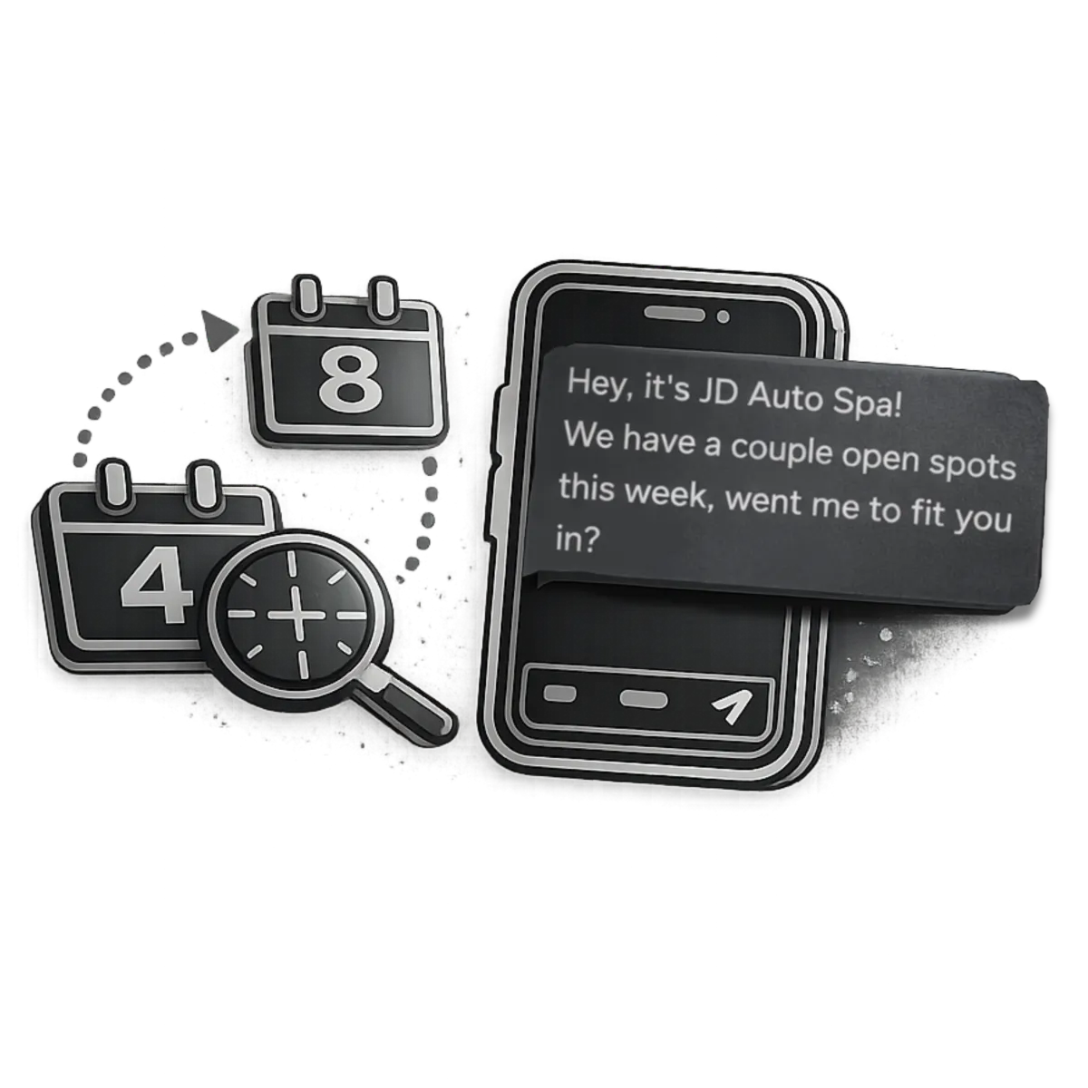 The system checks who hasn’t booked in 4 or 8 weeks and automatically texts them chto bring them back (optional discount offers).