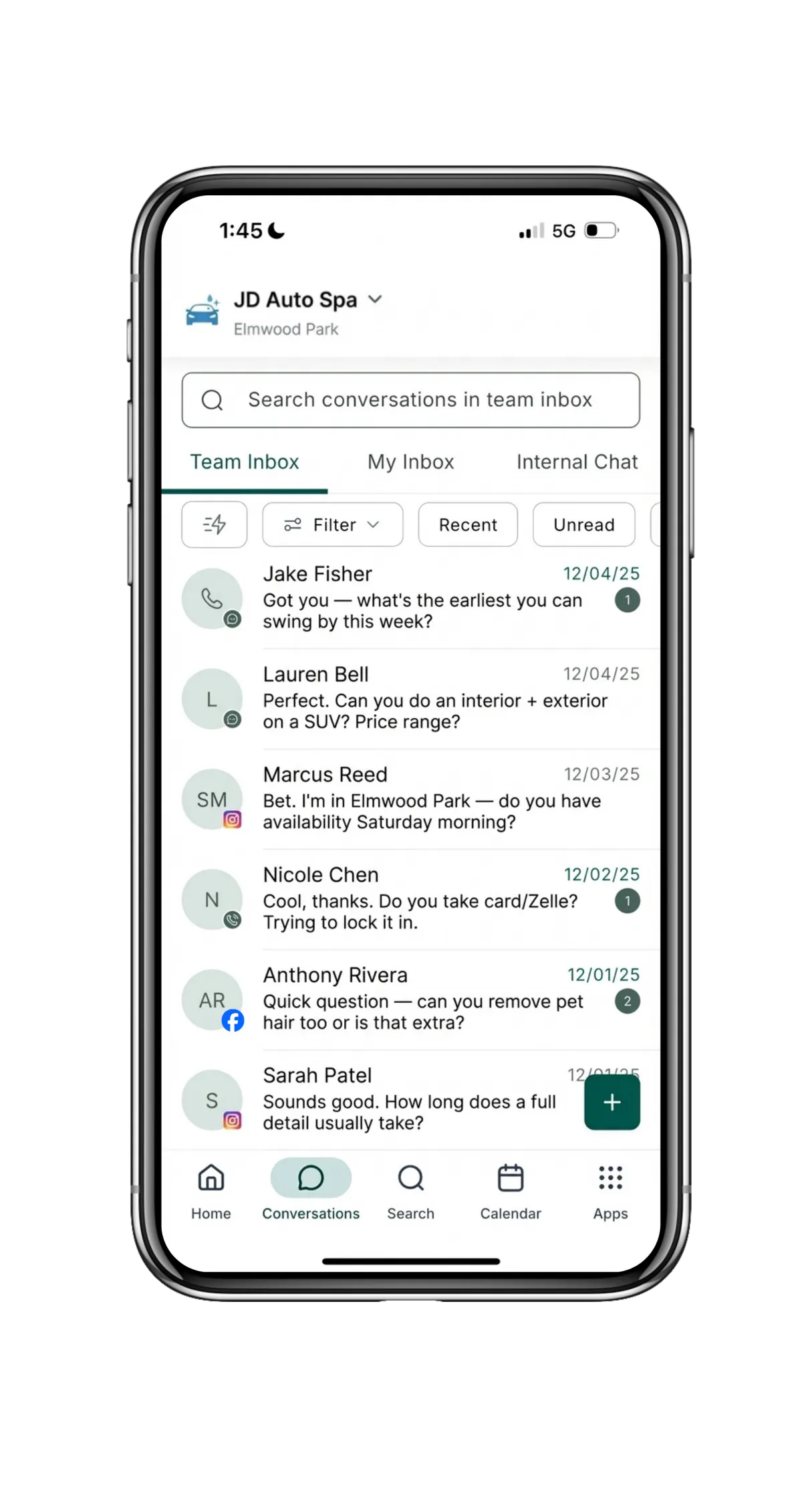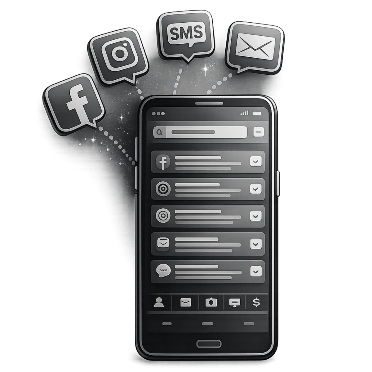 We merge your conversations from Instagram, Facebook, SMS, and email into one inbox, so you don’t miss leads or forget to reply.