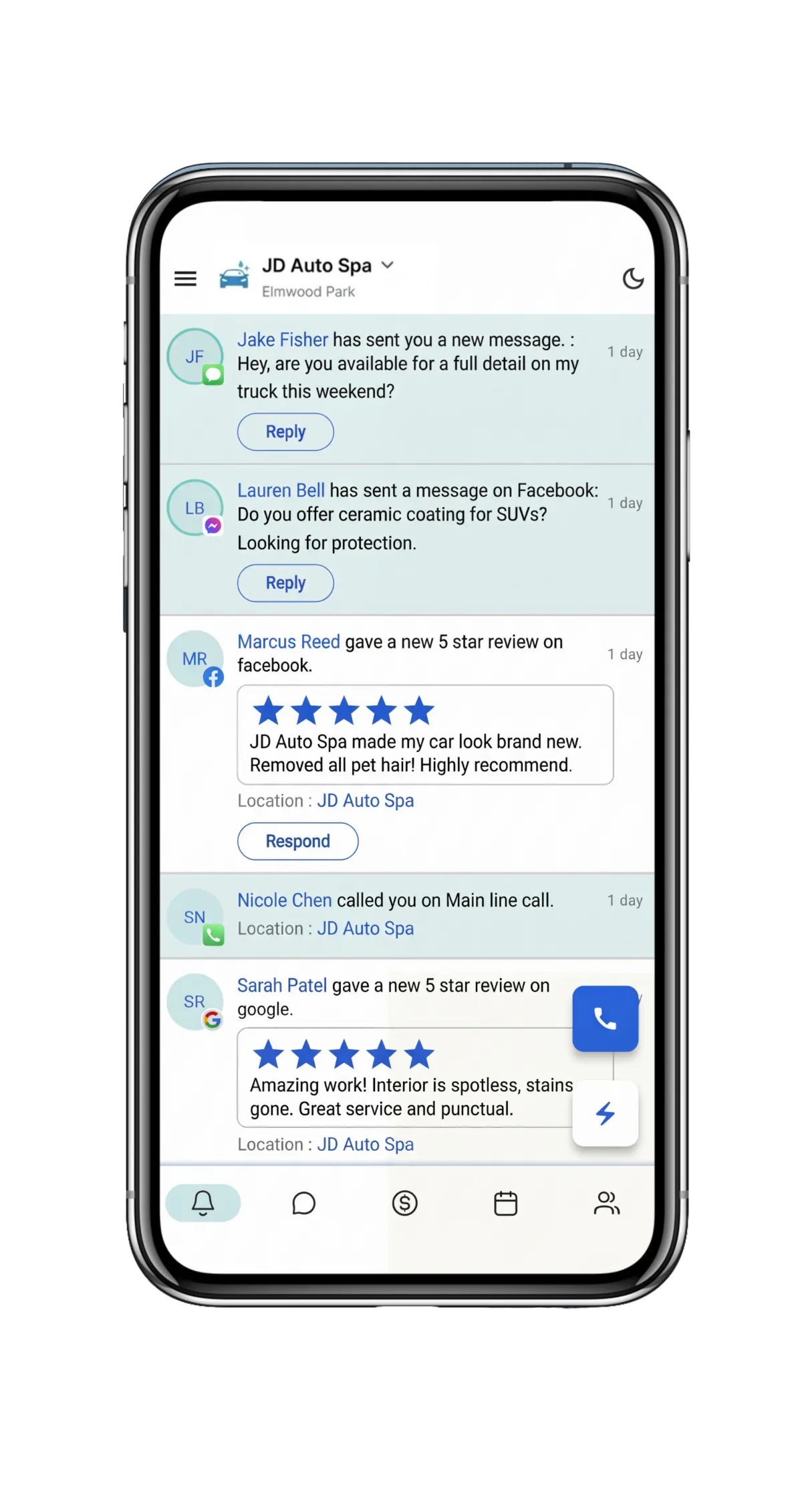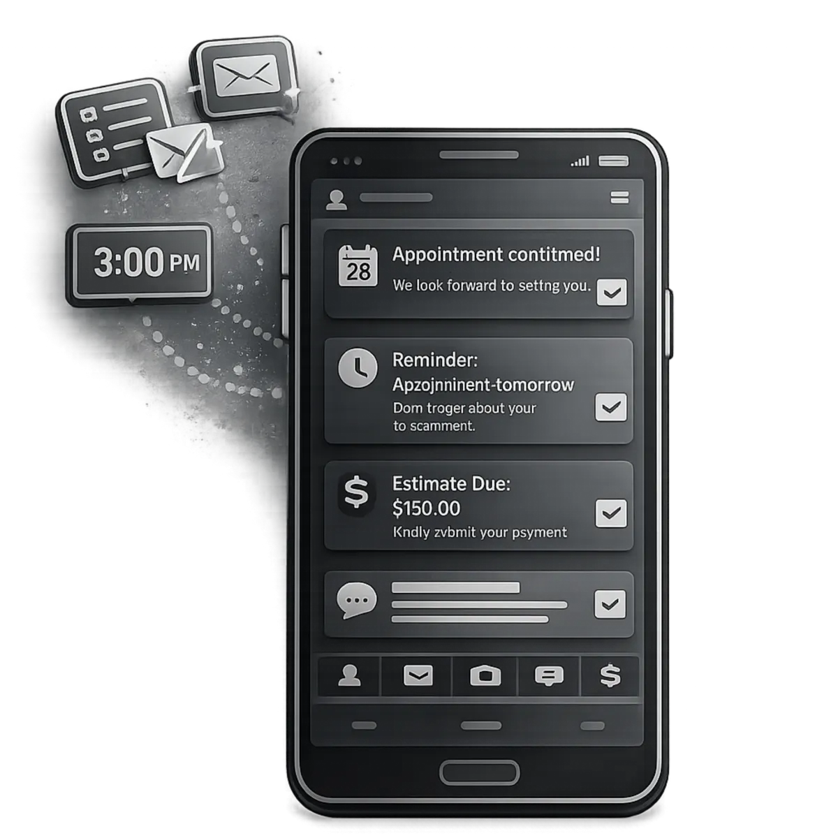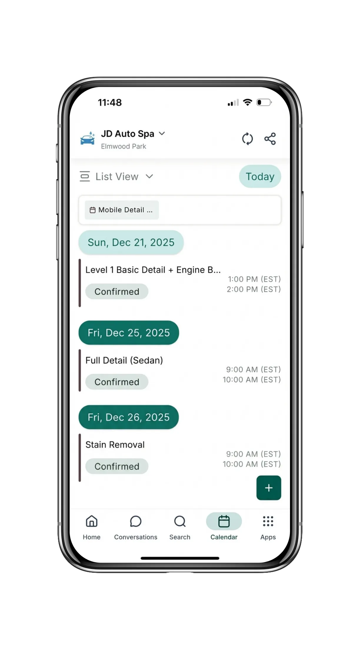 Manage your day from your phone while you’re out detailing: check your schedule, update job status, message customers, and send invoices fast.