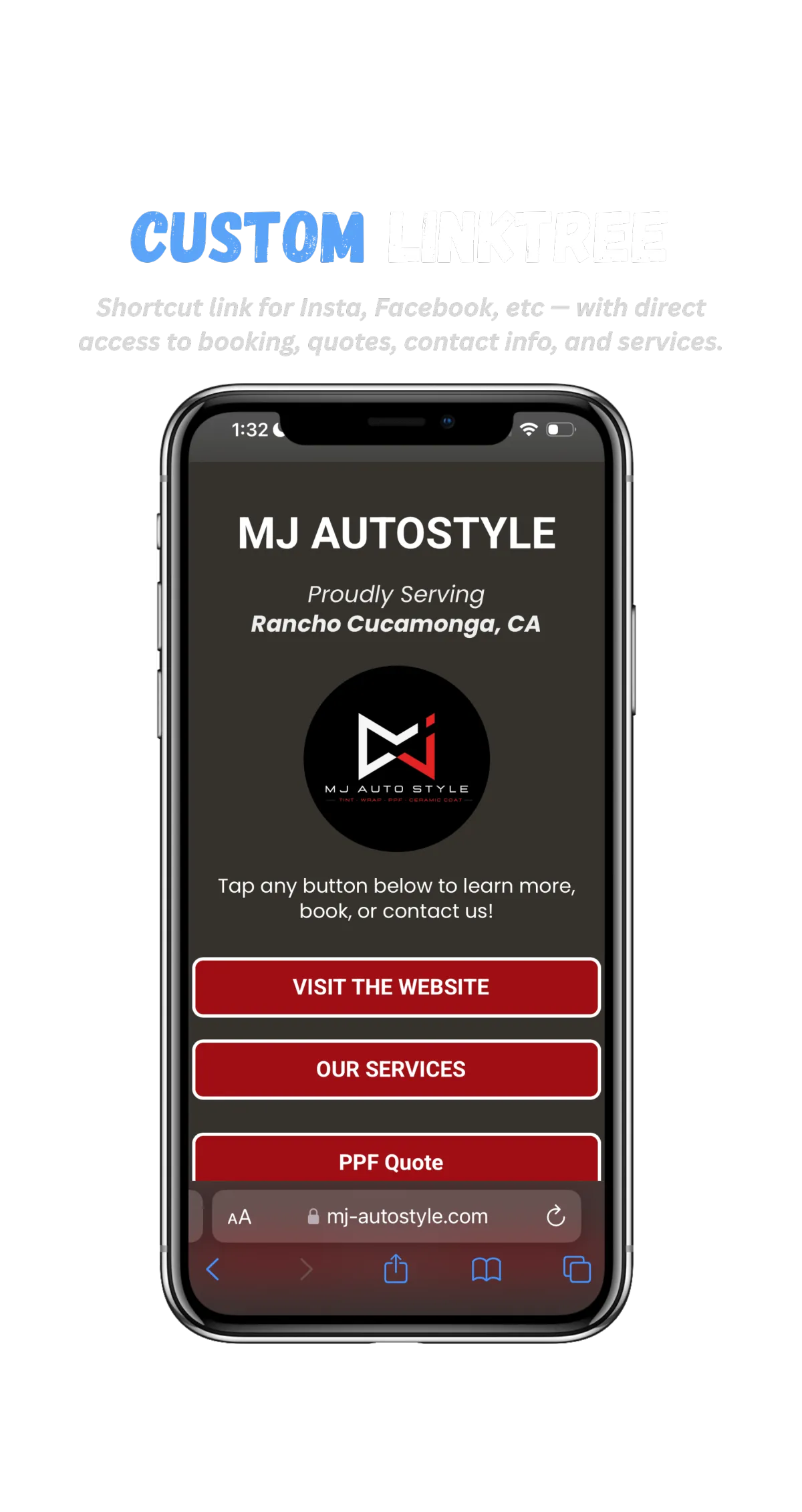 We build (or connect) a website + Linktree-style hub made for mobile detailers with buttons for booking, quotes, services, and contact — built to convert.