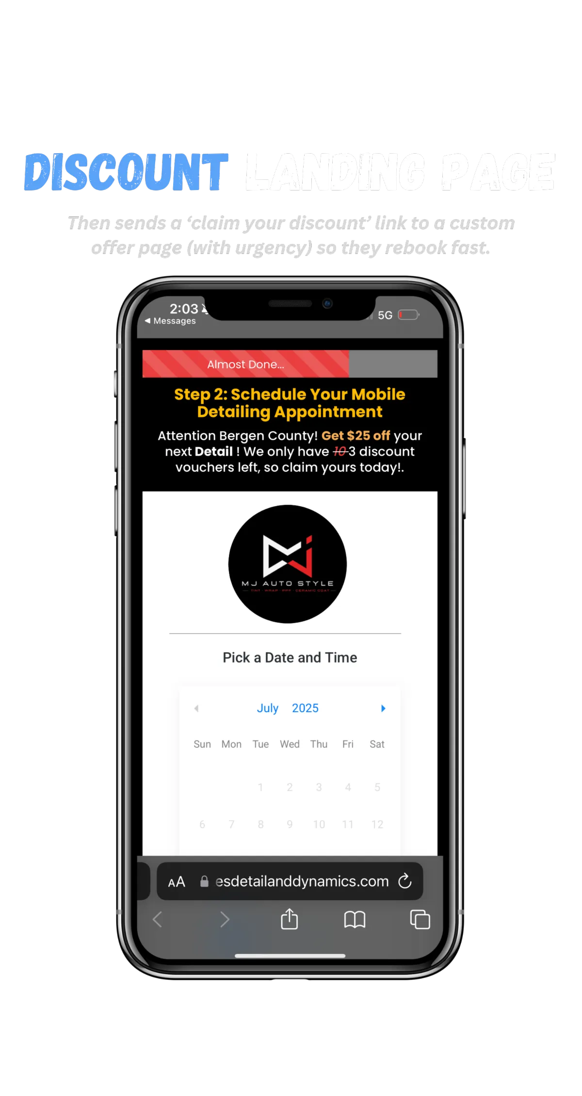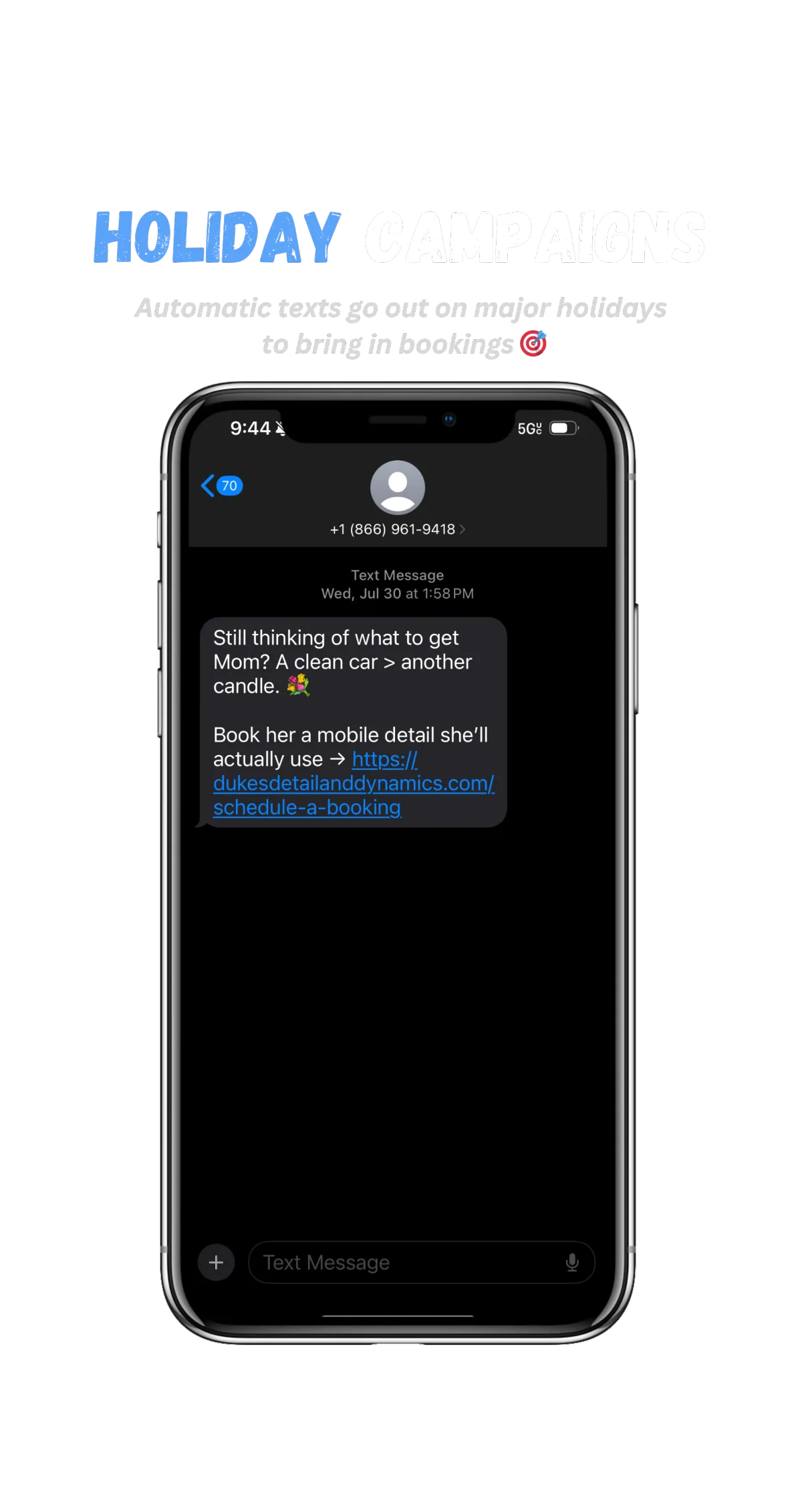 Send one link and clients can book 24/7. Appointments hit your calendar automatically with the service, time, address, and notes.